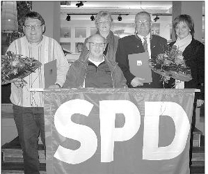 Gleich mehrere langjährige Mitglieder hat der SPD- Ortsverein Volmerdingsen bei seiner Jahreshauptversammlung geehrt. Friedrich Wilhelm Ulbricht ist seit 25 Jahren in der Partei, Heinz Schütte seit 40 Jahren, und Helmut Marks bringt es auf 50 Jahre Zugehörigkeit. »Ein Höhepunkt 2010 war für uns ein Spielplatzfest in Volmerdingsen«, berichtete Friedhelm Schäfer. Als wichtiges Zukunftsprojekt benannte er einen Fuß- und Radweg vom Weizenweg entlang der Volmerdingsener Straße bis zum Warmen Krug, da diese Strecke zu einem Zubringer der Nordumgehung werden soll.