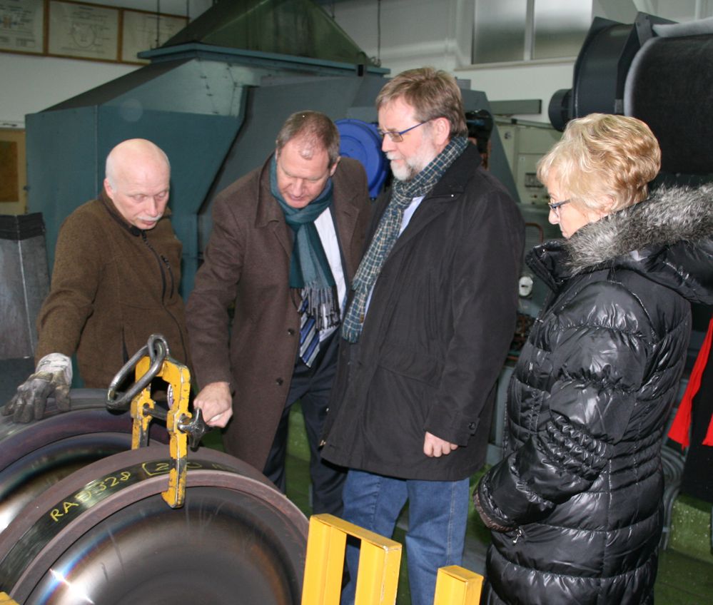 Gustav Herzog und Inge Howe waren besonders an den neuen Bremssystemen interessiert, die in Minden für die europäischen Eisenbahnen entwickelt und zur Serienreife gebracht werden. „Mit diesen neuen Systemen kann der Bremslärm von Güterzügen wesentlich gemindert werden.
