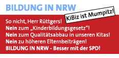 „Alarmstufe Rot: unsere Kinder sind bedroht!“, „Keine Kürzungen bei den Kurzen“ oder „KiBiz ist Müll“ sind nur einige der Aufschriften auf den zahlreichen Transparenten, die am Samstag vor dem Landtag zu sehen waren. Kreativ und einfallsreich zeigten über 15 000 Eltern, Kinder und Erzieher ihren Unmut über die Landesregierung und deren Gesetzesvorhaben. In Anspielung auf Familienminister Armin Laschet (CDU) riefen sie lautstark: „Laschet sein“ (Lasst es sein) oder „KiBiz ist Mumpitz, Herr Minister, treten sie zurück - und das sofort.“ Die am meisten Betroffenen –die Kinder selber- unterstützen ihre Eltern und Kindergärtnerinnen mit Rasseln und Trillerpfeifen.