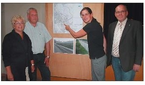Bildunterschrift: Manuela Rose vom Landesbetrieb Straßen NRW (Zweite von links) zeigt auf den Verlauf der neuen Lärmschutzwand in Rehme. SPD-Landtagsabgeordnete Inge Howe (von links), Michael Körtner, Vorsitzender SPD-Ortsverein Rehme, und Frank Helming, Vorsitzender Vereinsring Rehme, freuen sich zukünftig über mehr Ruhe in dem Ortsteil.
