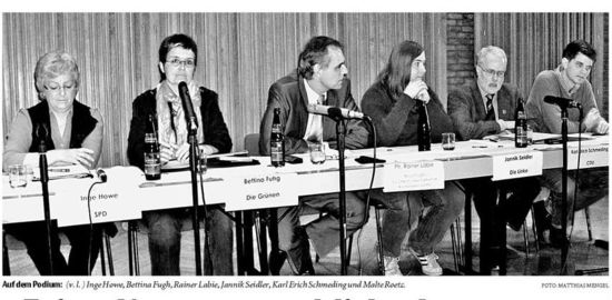 Bad Oeynhausen. Vier Wochen vor der Landtagswahl ist das Interesse an Information von und über die Kandidaten gering: nur rund 50 Besucher – von denen viele als Ratsmitglieder eher aus professionellen Gründen teilnahmen – kamen zur Podiumsdiskussion ins Gemeindehaus der Wicherngemeinde. Dessen Pfarrer Matthias Mengel zeigte sich enttäuscht, aber nicht entmutigt: „ Ich hoffe, dass trotzdem viele Christen am 9. Mai zur Wahl gehen.“