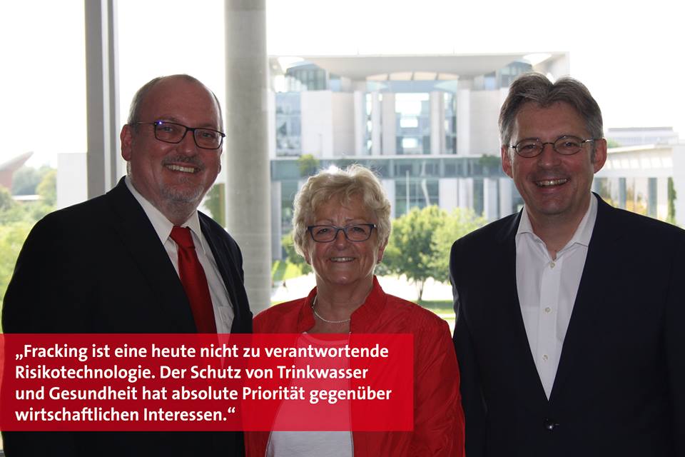 Die heimischen SPD-Abgeordneten MdL Inge Howe, MdL Ernst-Wilhelm Rahe und MdB Achim Post freuen sich über einen ersten Teilerfolg bei ihrem Engagement gegen Fracking.