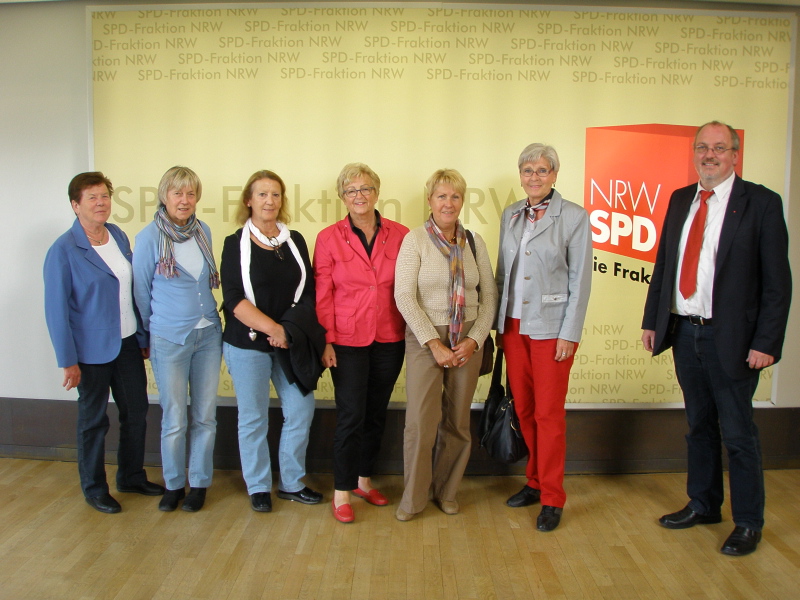 "Der Vorstand der Hiller Sozialdemokratinnen besuchte jetzt die heimischen Landtagsabgeordneten Ernst-Wilhelm Rahe und Inge Howe in Düsseldorf. Während der hitzigen Parlamentsdebatten in der letzten Woche konnten sich die Hillerinnen ganz persönlich über die Arbeit der Abgeordneten informieren.