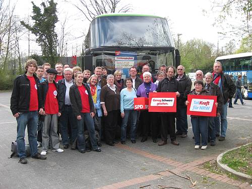 Mit einem vollbesetzten Bus aus dem Mühlenkreis waren die Teams der beiden heimischen SPD-Landtagskandidaten Inge Howe und Ernst-Wilhelm Rahe beim Wahlkampfauftakt der NRWSPD in der Düsseldorfer Philipshalle dabei. Mit Musik und Politik starteten die Minden-Lübbecker Sozialdemokraten in den Endspurt bis zur Landtagswahl am 9. Mai.